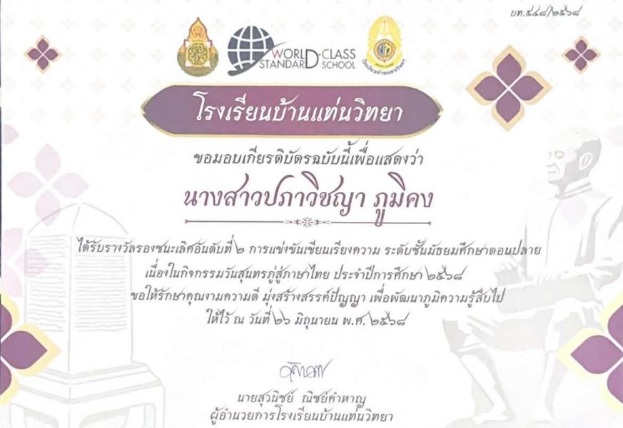 21) ชนะเลิศอันดับ 2 การแข่งขันทักษะภาษาไทยระดับโรงเรียน 5 (26 มิถุนายน 2568)