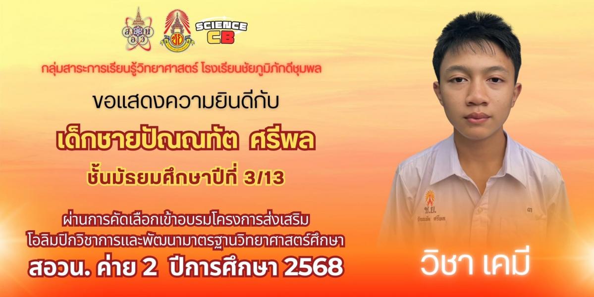 65) รองชนะเลิศอันดับที่ 1 ระดับประเทศ 400 (6 มกราคม 2569) สอบติด สอวน เคมีค่าย 2 (เพลินพิศ)