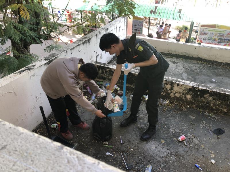 84) มีความเสียสละช่วยเหลือครู. 20 (3 ธันวาคม 2568) เก็บขยะ อาคาร 1 (เสาวภา)