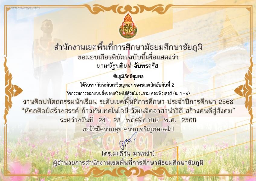 82) รองชนะเลิศอันดับที่ 2 .ระดับจังหวัด . 70 (28 พฤศจิกายน 2568) (ศันสนีย์)